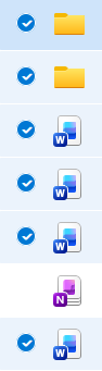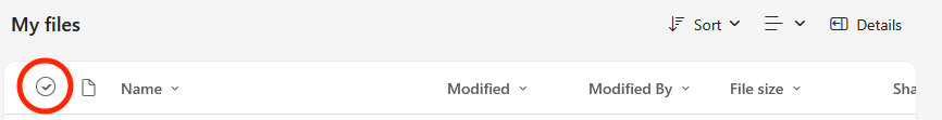 - All files on your OneDrive will be displayed under My Files. To select all files, hover to the left of “Name”