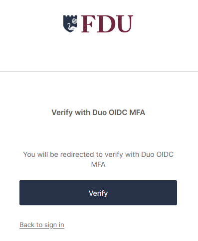 - Sign in using your FDU account, enter your FDU username and password, complete DUO MFA verification by selecting “Approve”, and then select your Microsoft account (your FDU account)