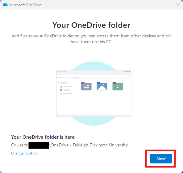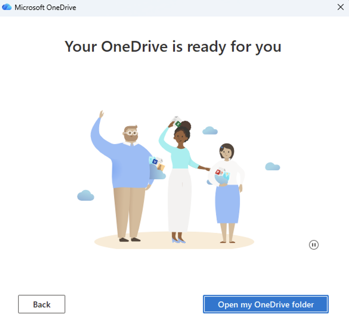 - When “Your OneDrive is ready for you” appears, click “Open my OneDrive Folder”