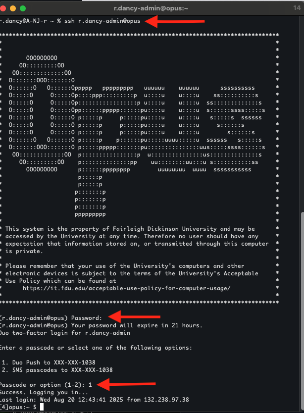 The Opus server can be access using secure transport protocols such as SSH and SFTP. Access is only allowed from campus networks. All off campus users will need to access Opus using FDU’s Virtual Private Network (VPN) to use the Opus server